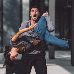 Deux êtres, tour à tour, bousculés, enlisés, percutés, écrasés, propulsés par une destinée qui s’impose à eux : l’exil. Leur jeu est dans l’action, celle qui nous fait avancer coûte que coûte. Une Jungle, c’est cette émotion brute générée par l’errance de corps nomades livrés à eux-mêmes.